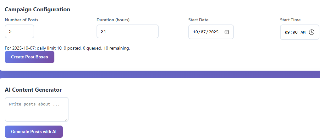 Click Automation to queue everything—boom! your posts will publish at the scheduled times.