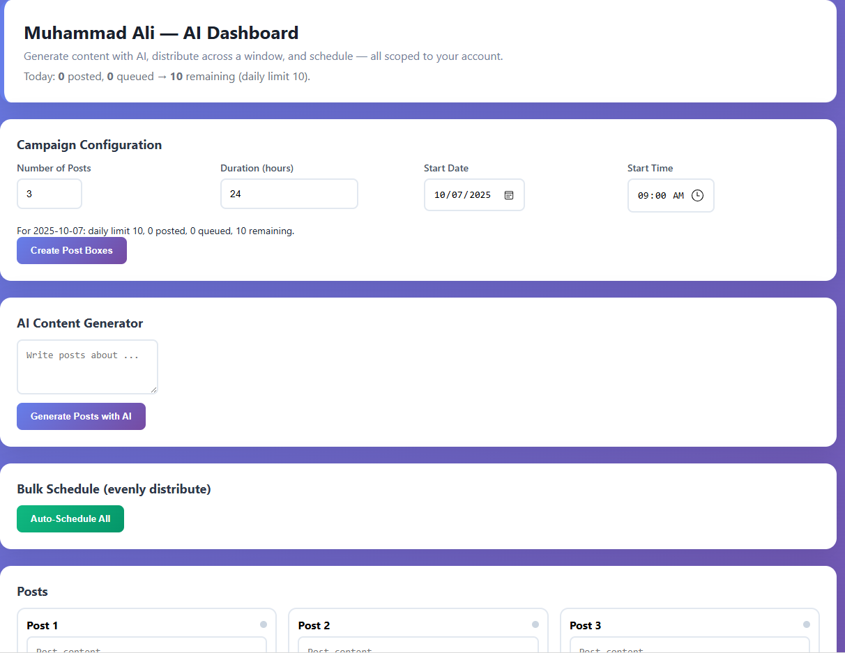 Your administrator will send you a unique link to the OneClickAIPost AI Dashboard.