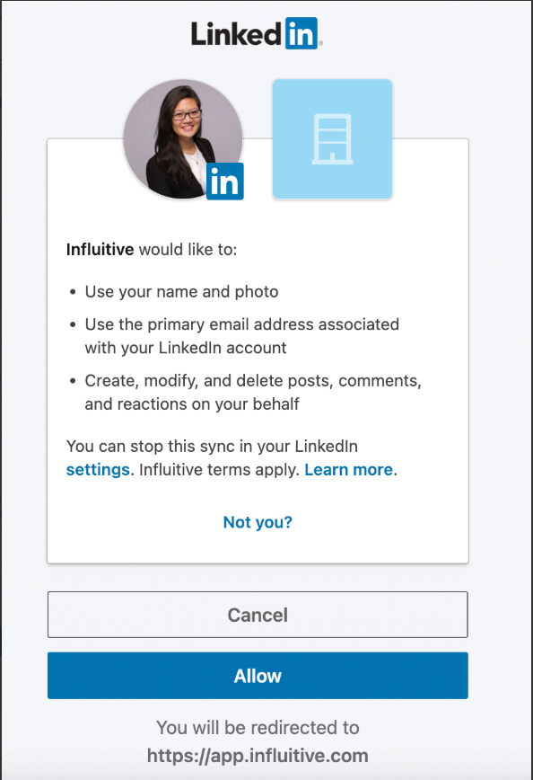 You’ll see the LinkedIn consent screen. Click Allow to grant: